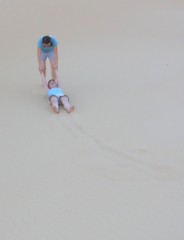 each other backwards down a very steep sand dune |